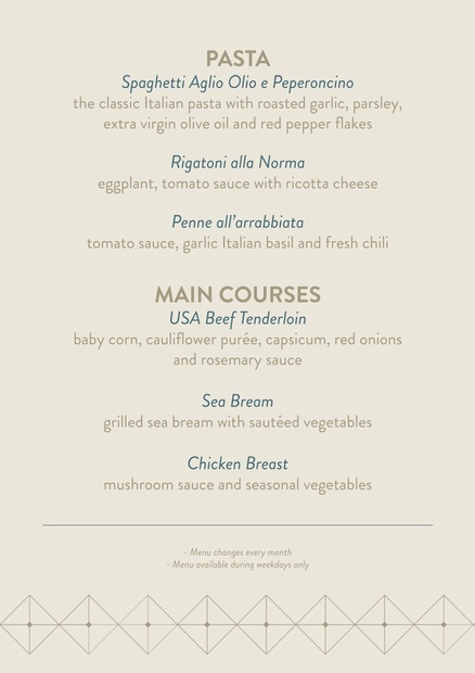 Experience lunch in a Mediterranean atmosphere and enjoy,selected specials, with seasonally homemade produce to create superior gastronomic flavors. The restaurant space is elegantly spread out and owns a warm and stylish ambience with specially curated music to enrich the mood.